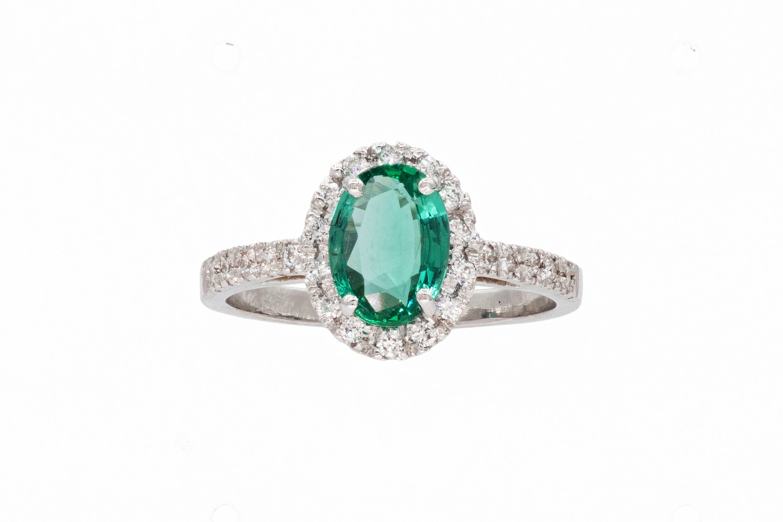 Anello oro bianco e smeraldo top color ct.1,01 e diamanti F color ct.0,24.